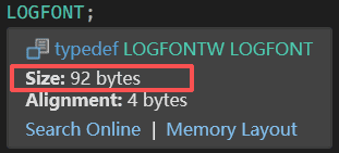 于是我们就知道了 LOGFONT 的 Size 是 92,保险起见我们还是再指定字符集为 Unicode。完整代码如下:
