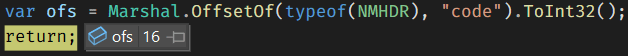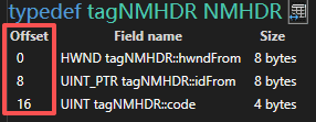 不用担心,Marshal 也有对应的方法 OffsetOf,以 NMHDR.code 为例:
